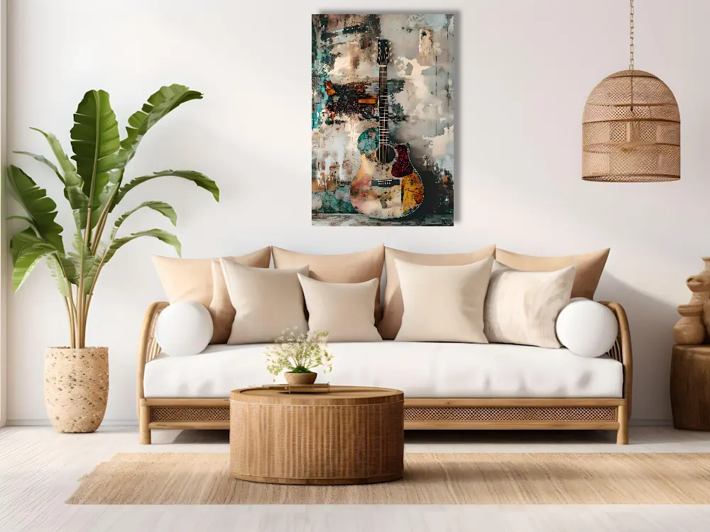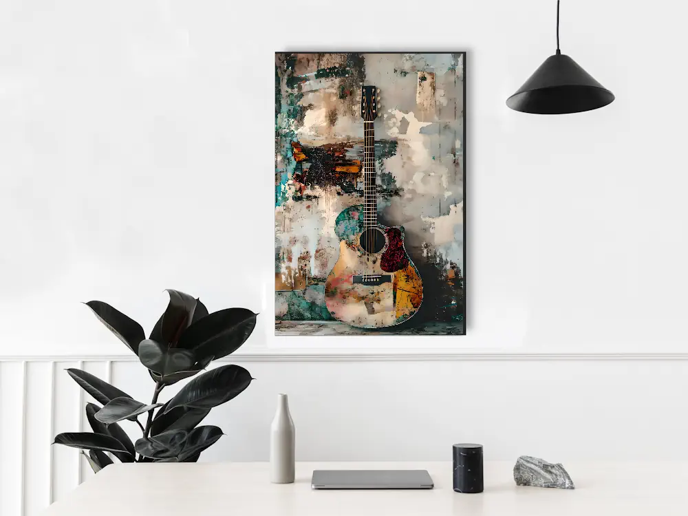 A Guitar’s Bold Presence in Wall Art in a Modern Living Space