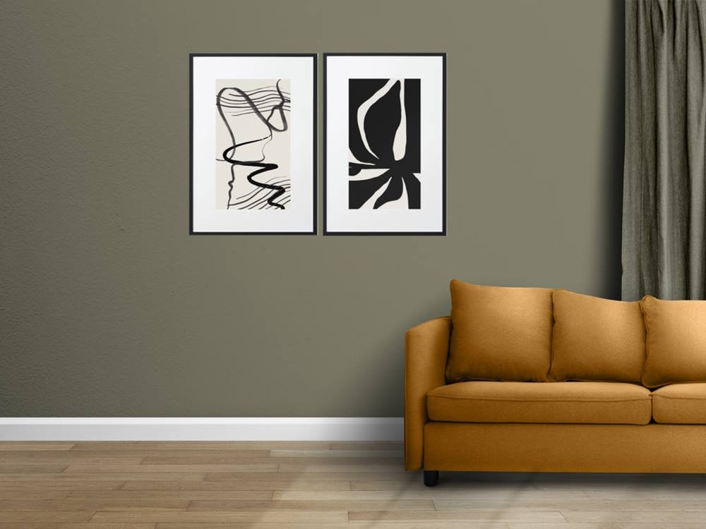 Black and Beige Abstract Drawing Printed Poster Wall Art