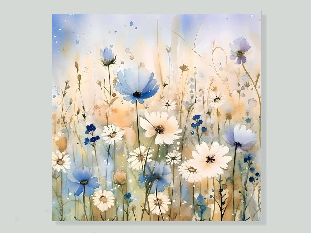 Blue Floral Watercolour Style Canvas Wall Art Prints