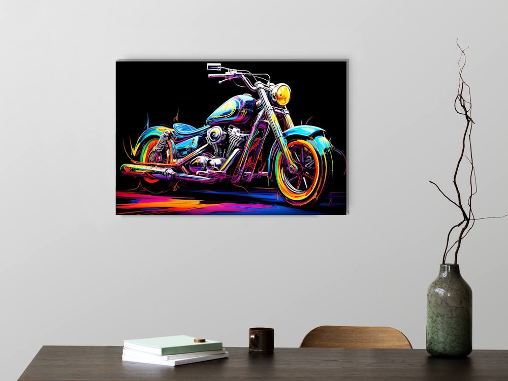 This Motor Bike Colourful Watercolour Style Canvas Printed Wall Art just for the motor bike lover is expertly printed using high-quality, fade-resistant inks, ensuring the longevity and brilliance of the artwork. The large size and detailed craftsmanship make it a focal point for any space, whether it’s a living room, office, or cultural institution.