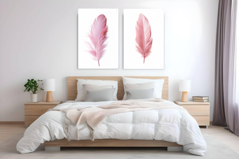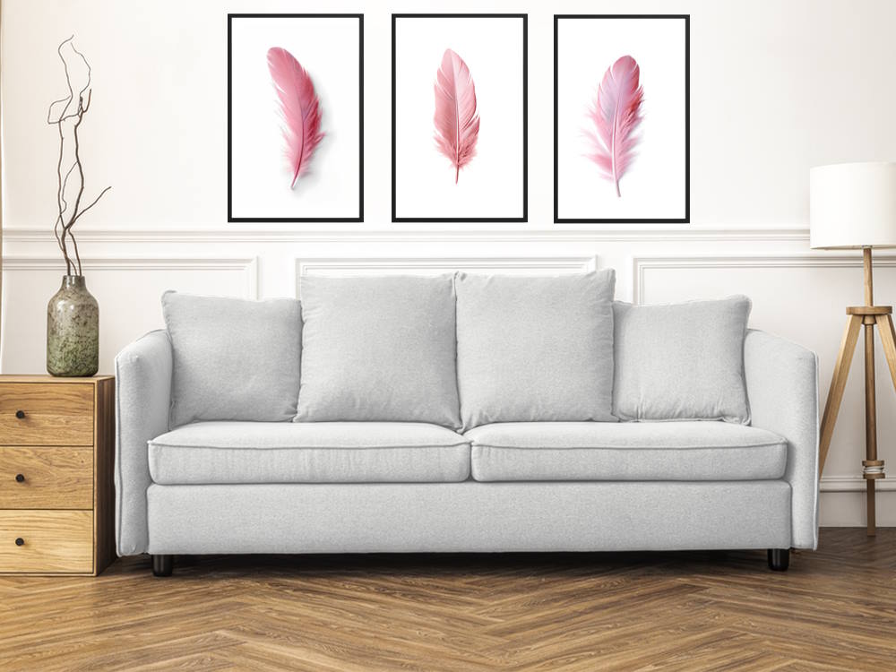 Pink Feather Printed Wall Art Posters for Living Room. Match with the Pink Feather set of 3 to get a 20% discount of the total price.